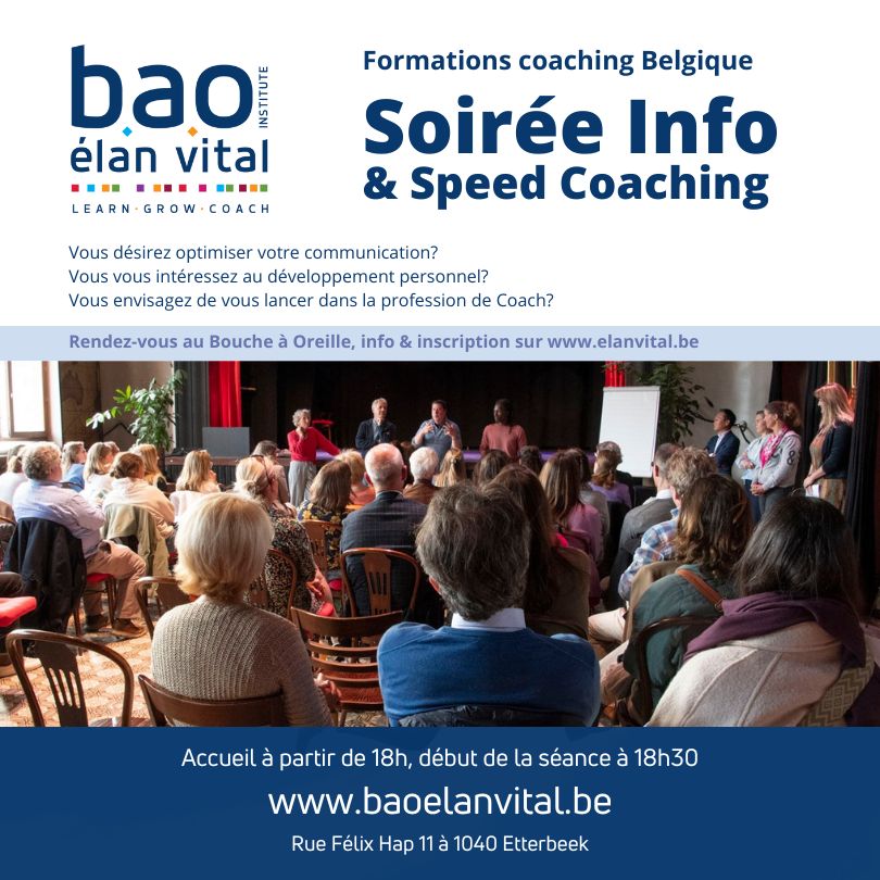 L'équipe de l'institut BAO-Elan Vital vous invite à la prochaine Soirée-info & Speed Coaching gratuit au Bouche à Oreille